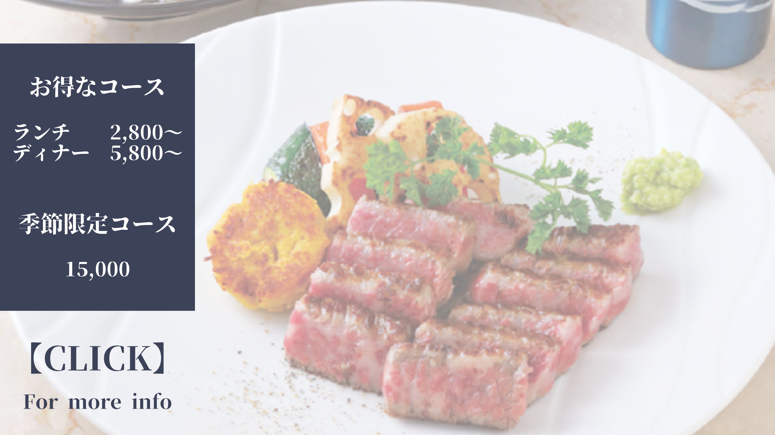 神戸三宮駅から徒歩5分。「神戸ビーフ」をはじめとする黒毛和牛のステーキや、伊勢海老、アワビといった贅沢で新鮮な海の幸をご提供いたしております。